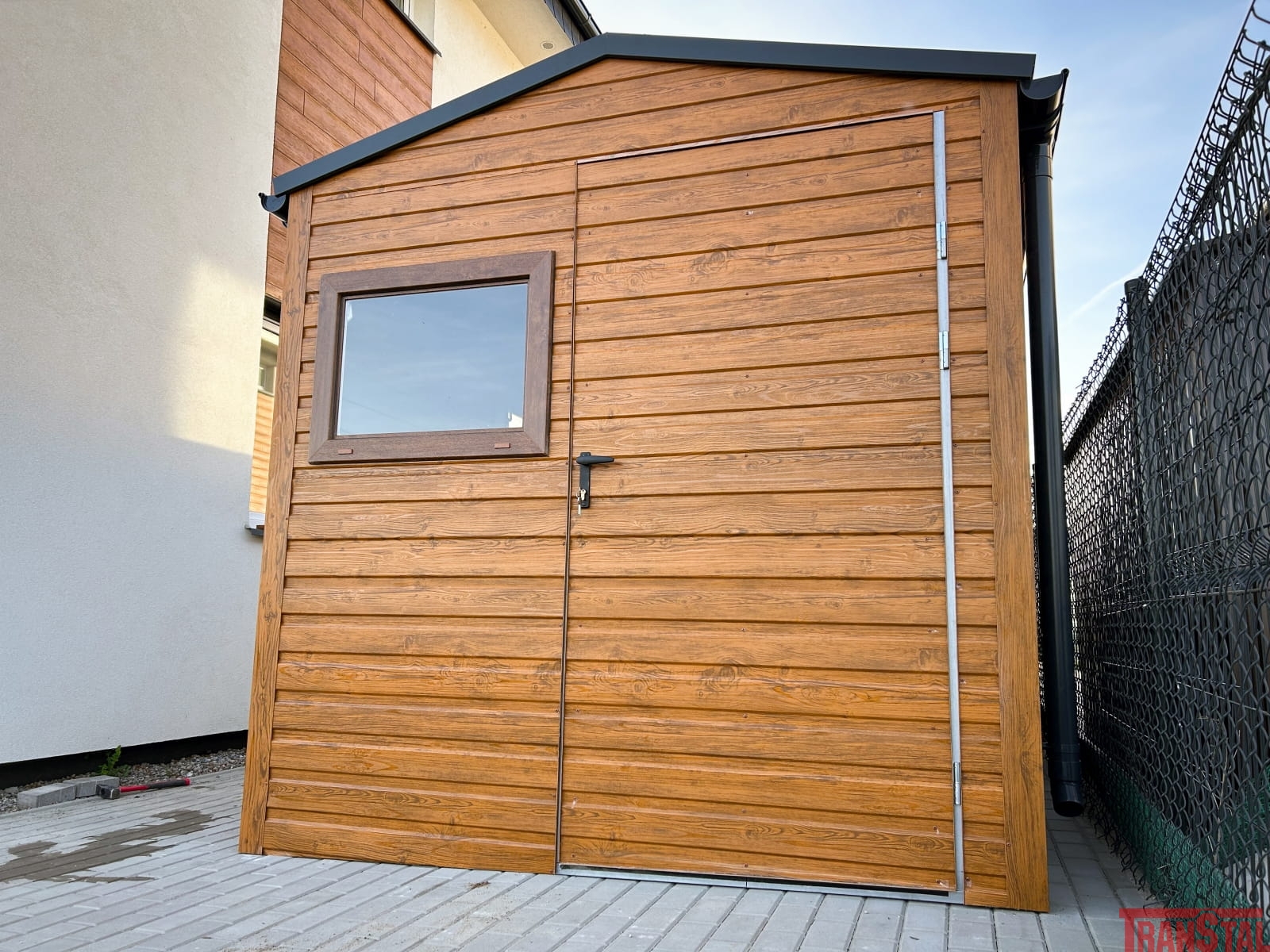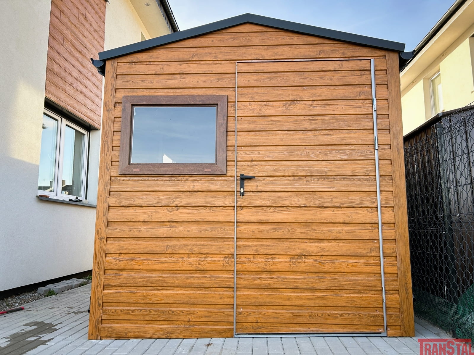 Domek ogrodowy / narzędziowy 2,3x3,9m, dąb rustykalny, konstrukcja z profili ocynkowanych, model: Mila