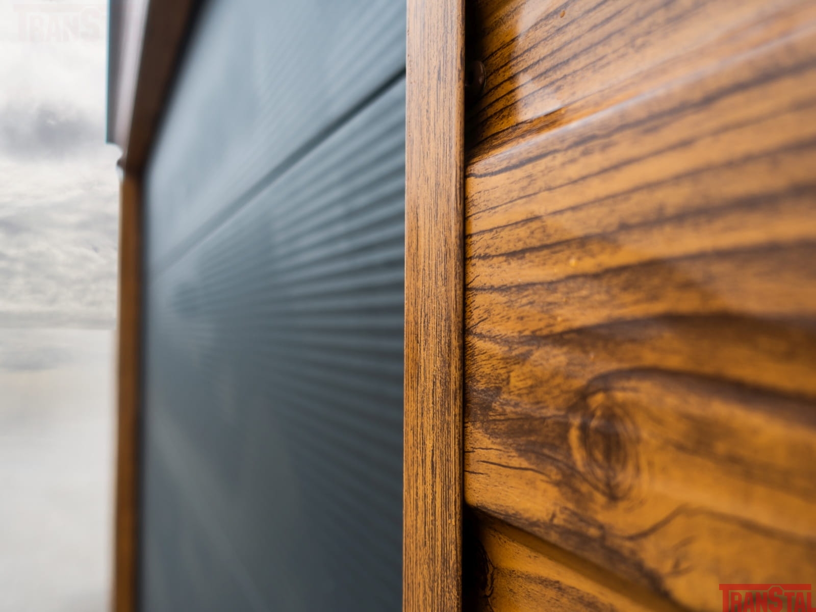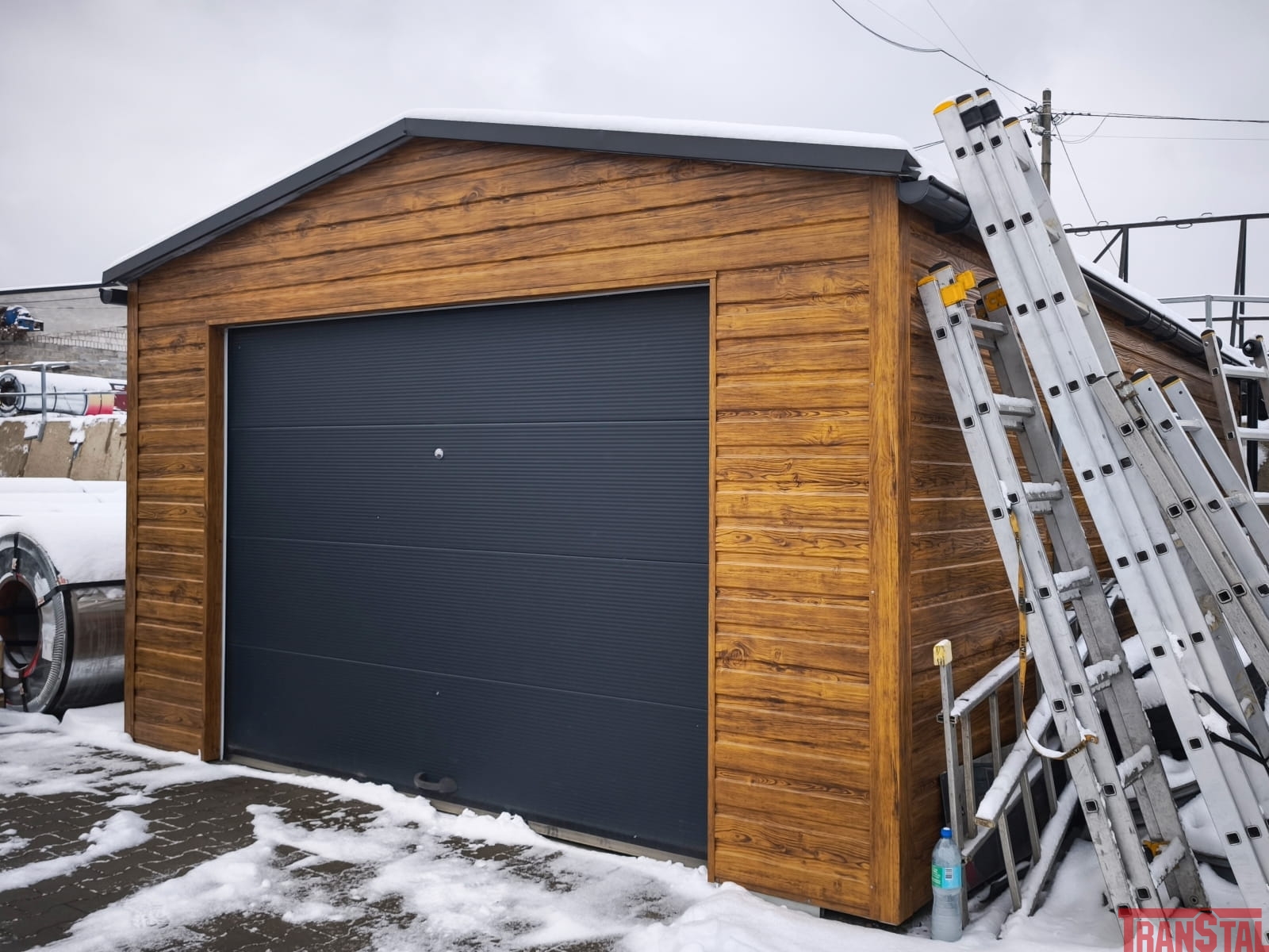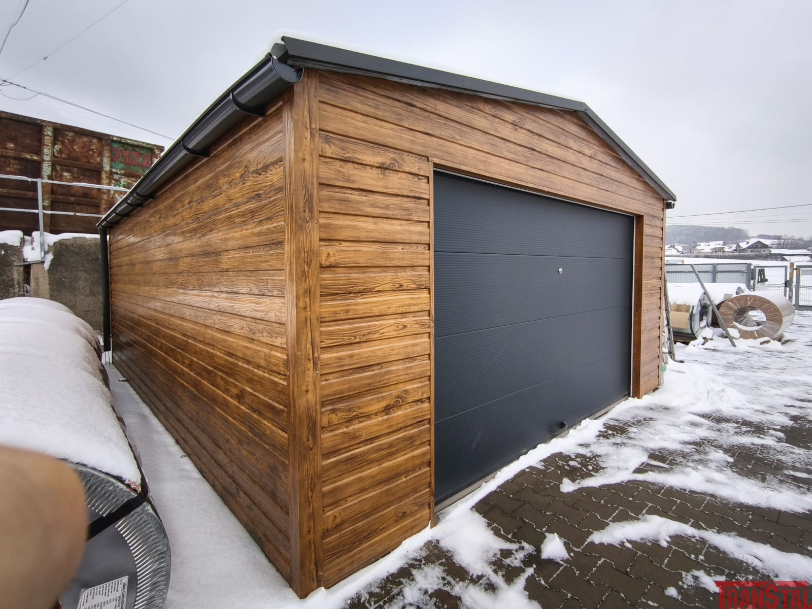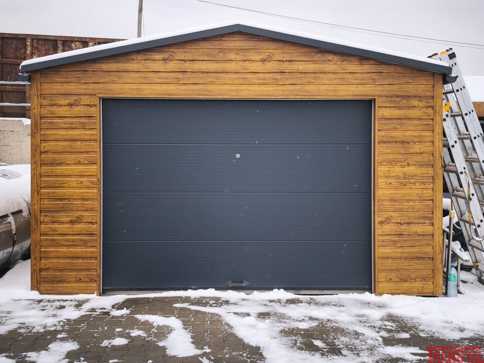Garaż blaszany drewnopodobny 4x6m z bramą segmentową w kolorze Antracyt - z Ekspozycji