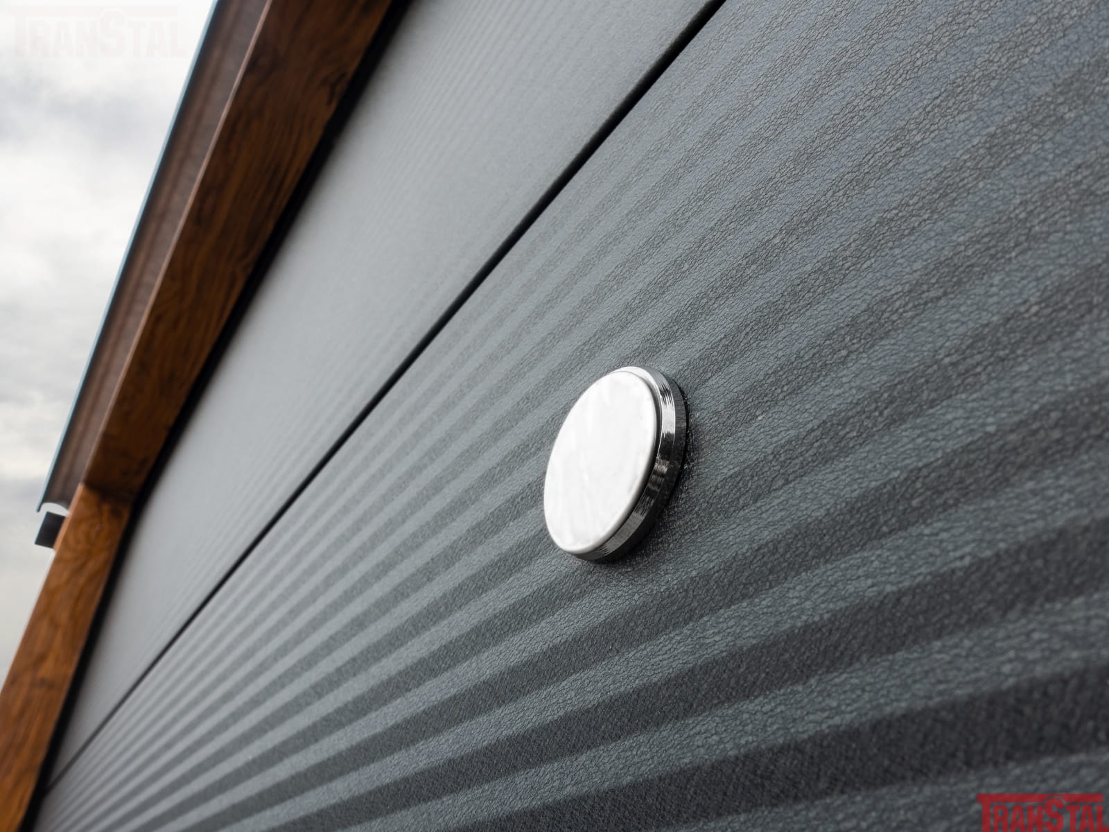 - Zewnętrzne poszycie garażu obłożone jest blachą trapezową ocynkowaną ogniowo w I gatunku w wybranym kolorze i podwyższonej odporności na warunki atmosferyczne.