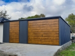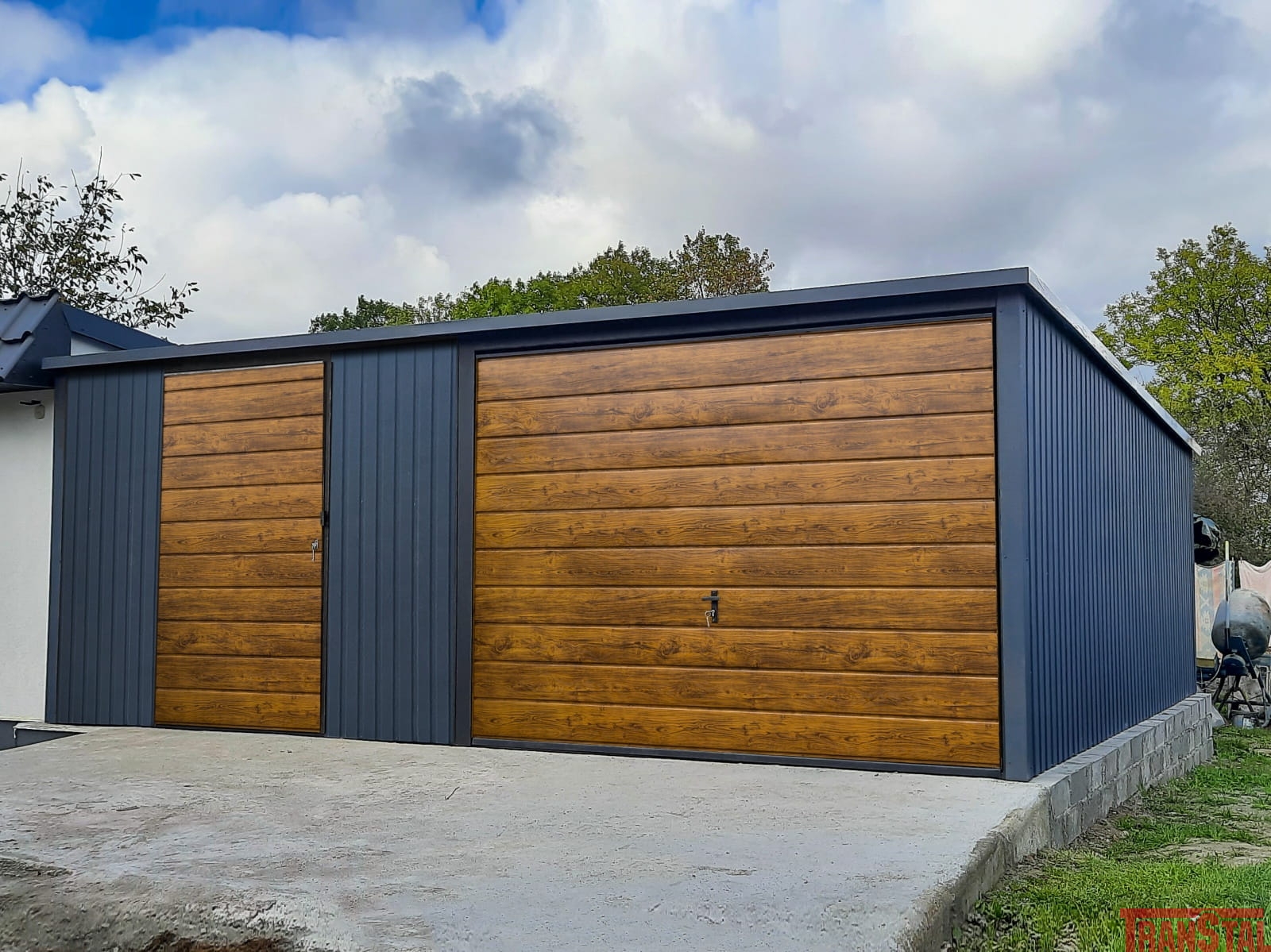 Garaż blaszany o wymiarach 6x6m w kolorach Matowy Grafit i Dąb Rustykalny