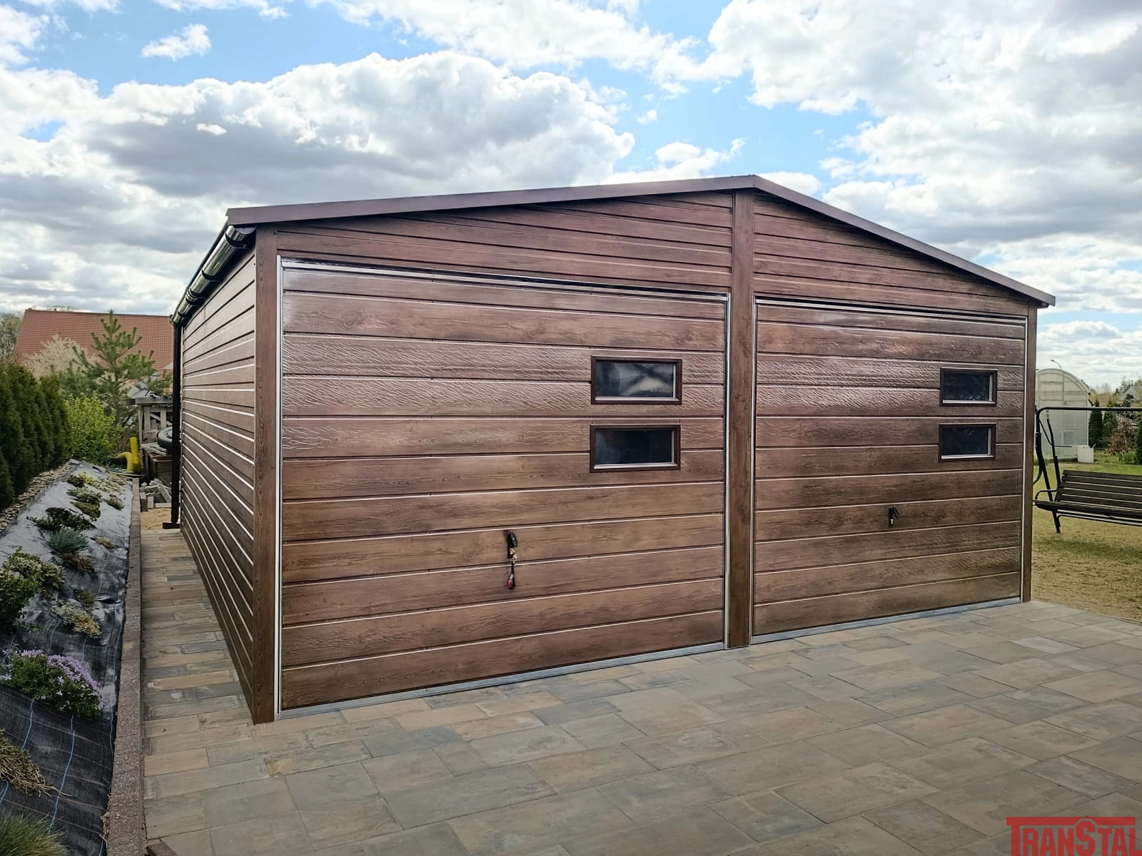 Garaż blaszany dwuspadowy 6x5,8m | Orzech | Automatyka