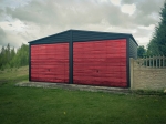 Garaż blaszany o wymiarach 6x6m w kolorach Czerwień i Czerń.