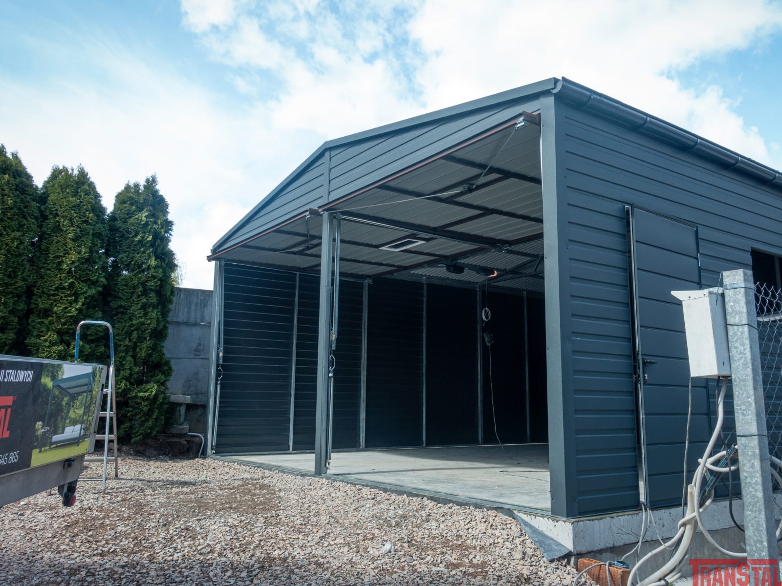 - Konstrukcja garażu wykonana jest z profili stalowych ocynkowanych (atestowanych)