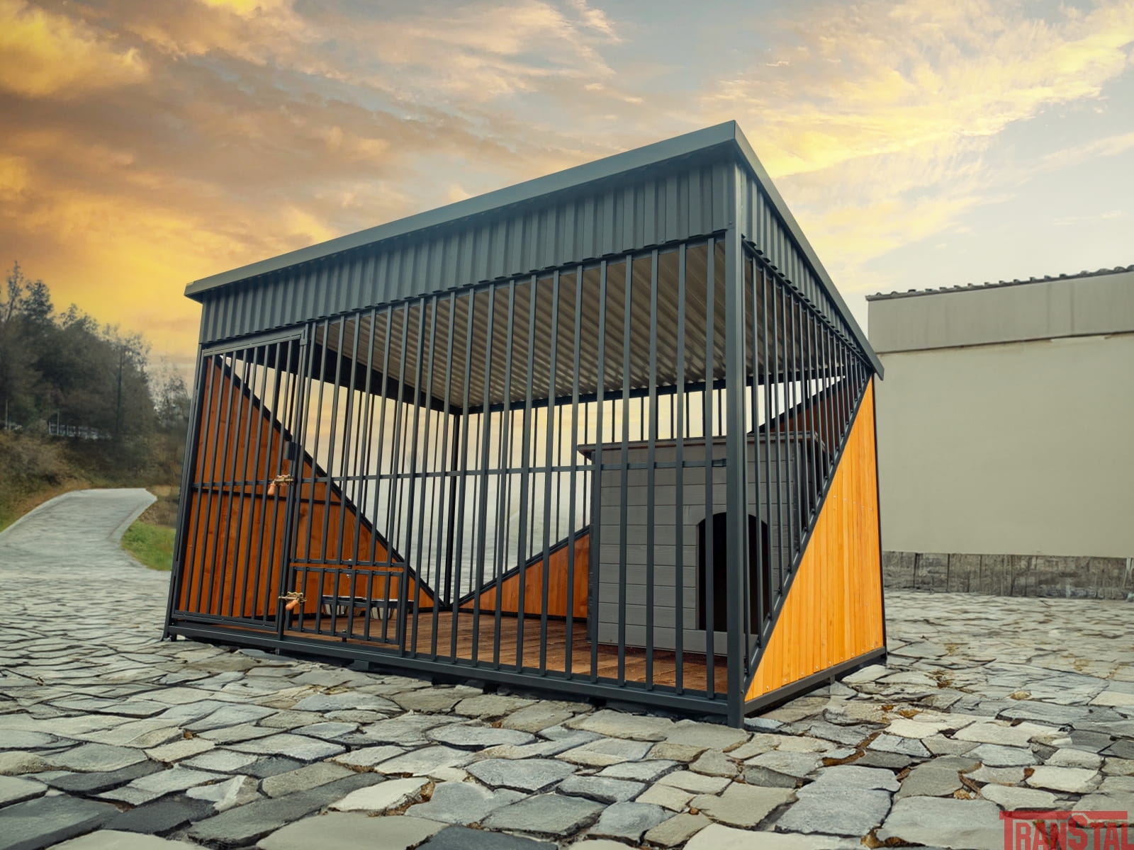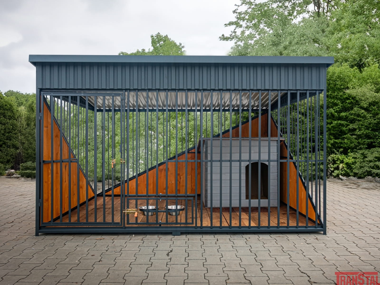 Kojec dla psa 2,9x2m Premium matowy grafit + podłoga + buda xl + miski TANGENS
