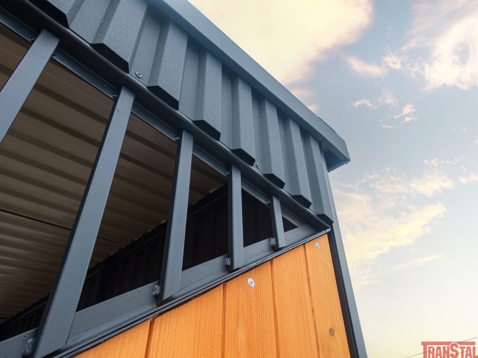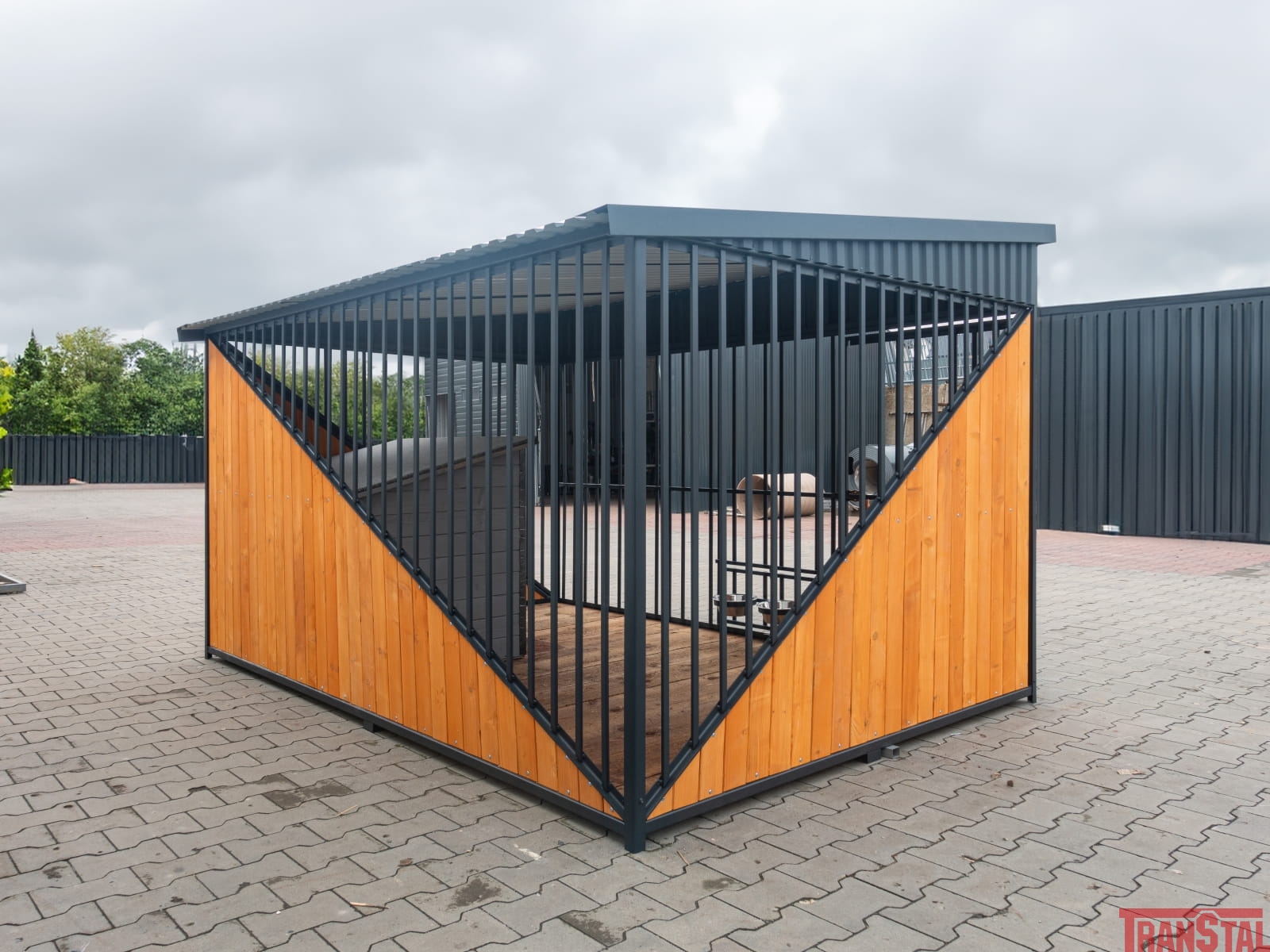 - Zadaszony kojec o wymiarach 2,9 x 2m wraz z oblachowanym wiatrołapem