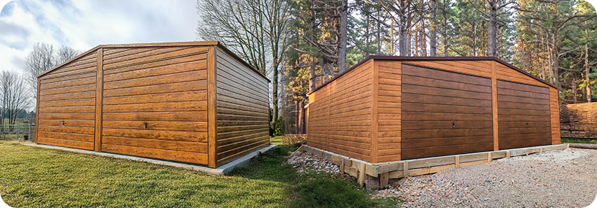 Garaże blaszane drewnopodobne to idealne połączenie tradycyjnego designu z nowoczesną technologią. Dzięki technologii lakierowania blachy, uzyskujemy efekt wizualny do złudzenia przypominający naturalne drewno, przy zachowaniu wszystkich zalet metalowej konstrukcji.