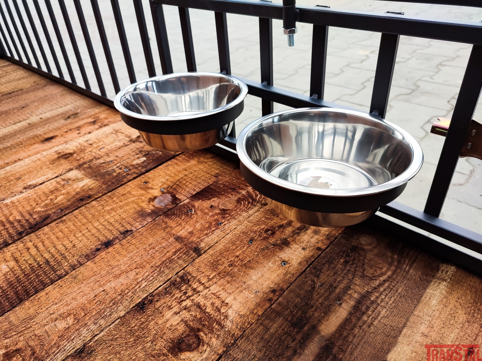 - obrotowy uchwyt na dwie miski umiejscowiony na przodzie kojca obok drzwi