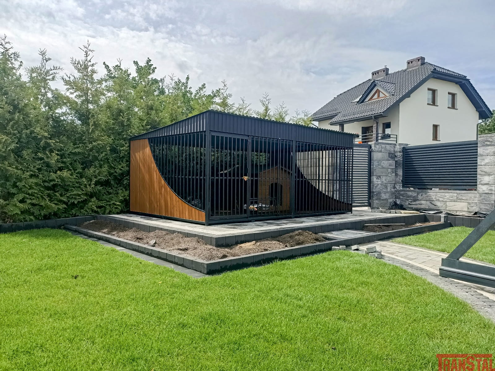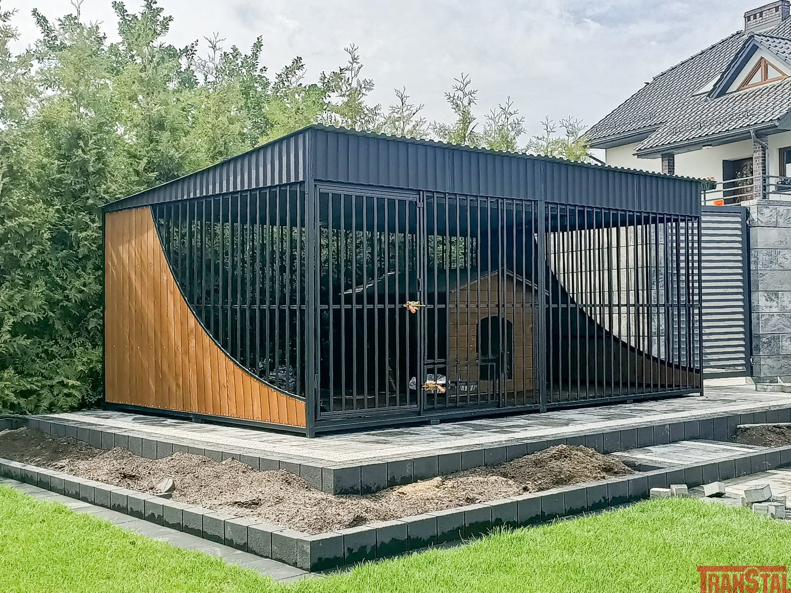 Kojec dla psa 4x2,5m Premium + buda xxl + podłoga + odeskowane boki + wiatrołap
