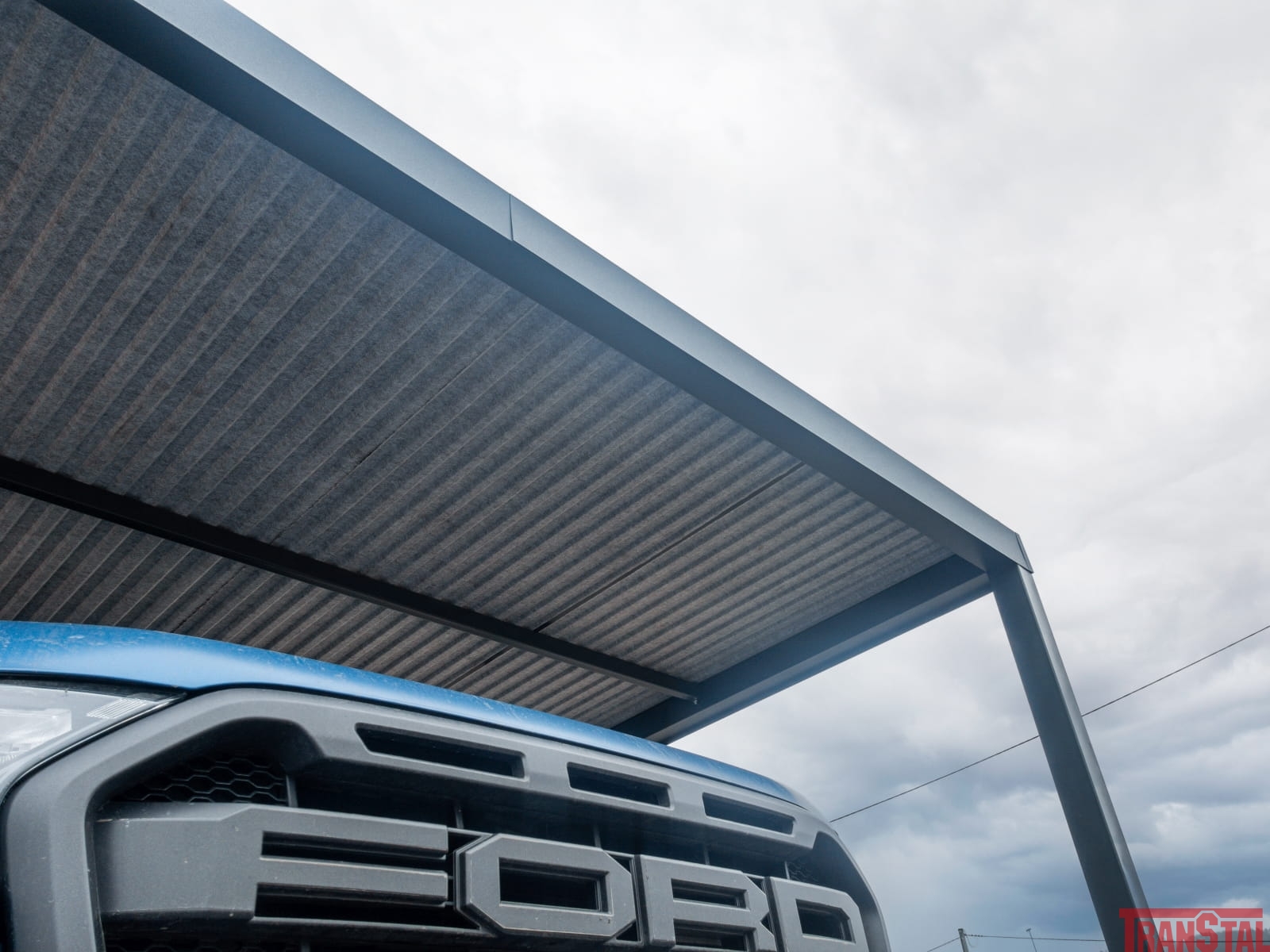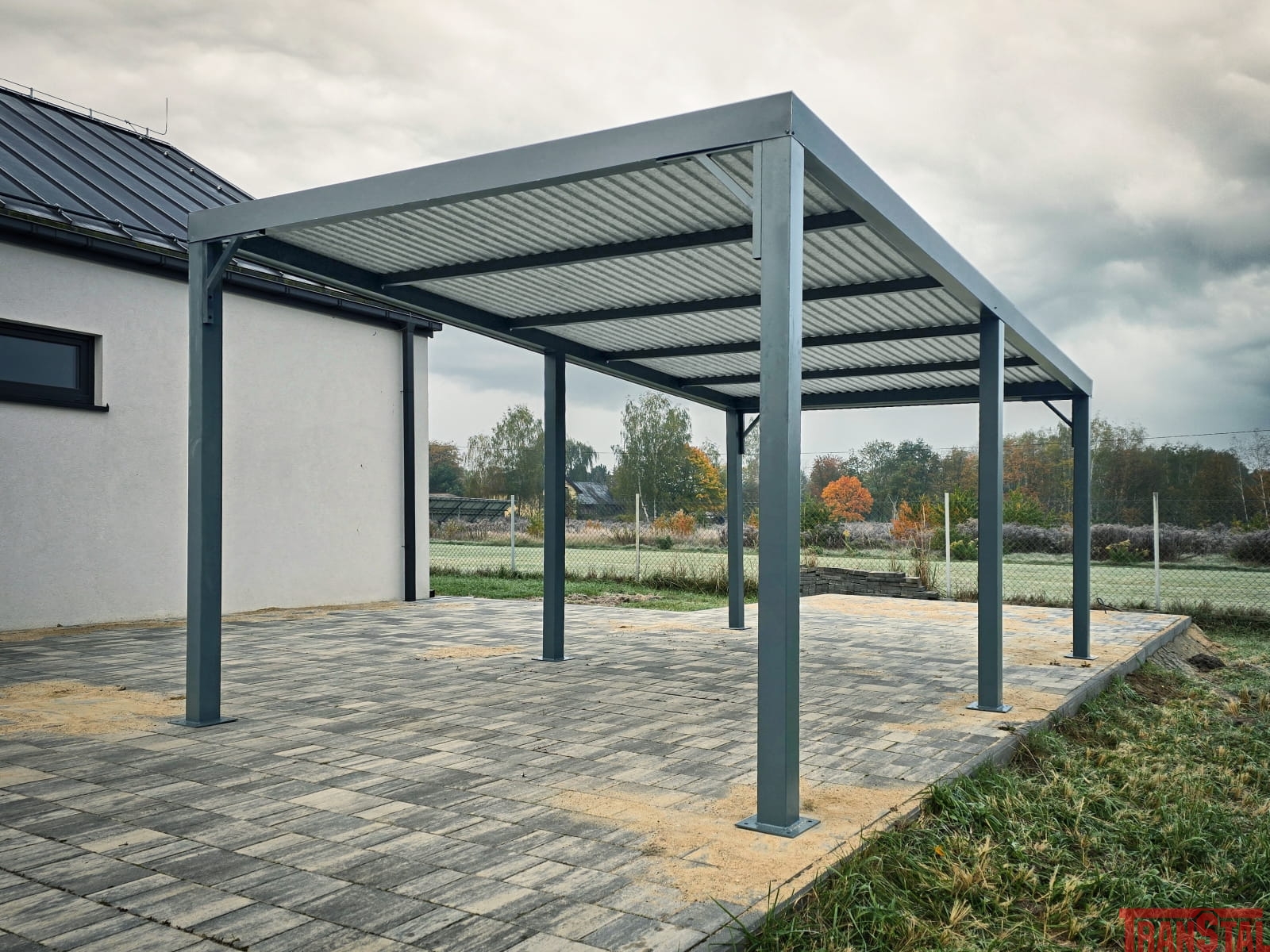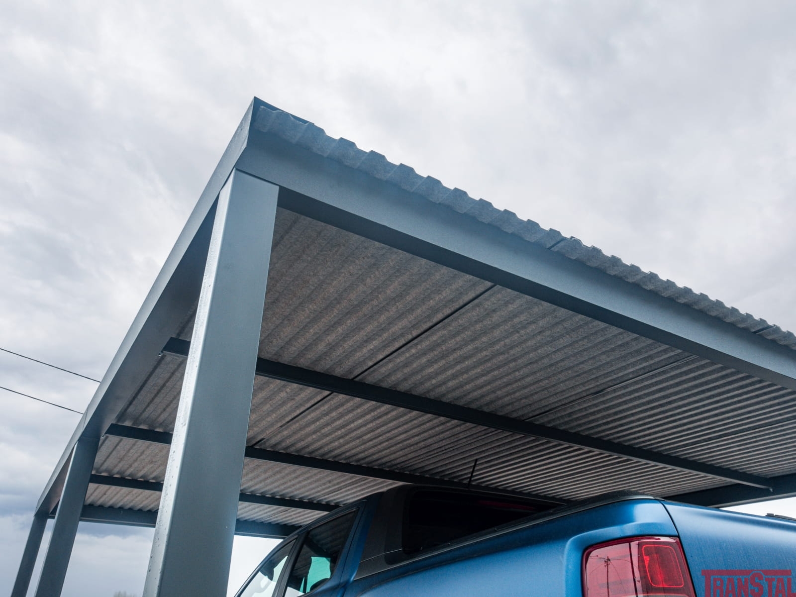 Wiatę garażową cechuje solidna konstrukcja nośna wykonana profili zamkniętych ocynkowanych o wymiarach 10x10cm.